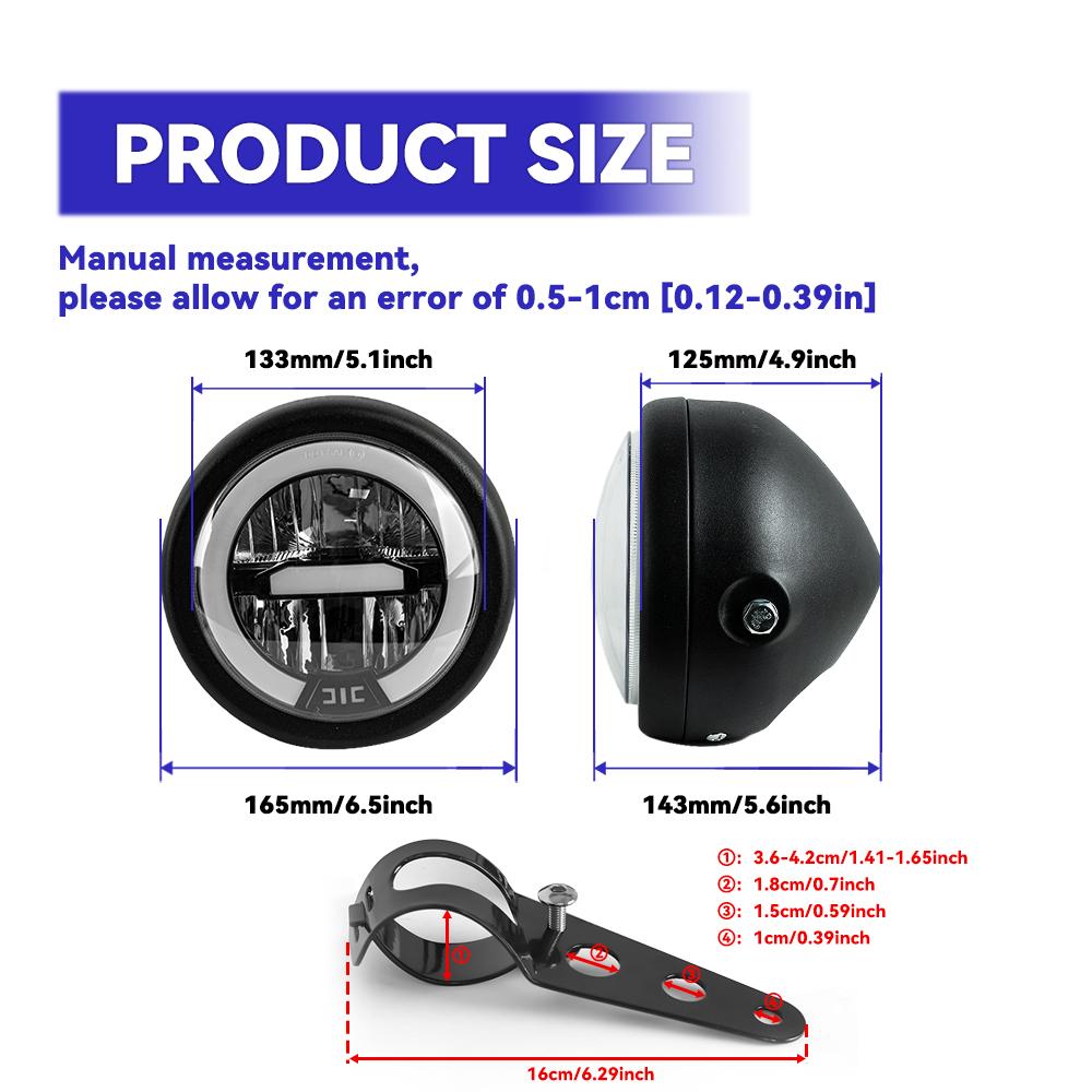 Retro Angel Eye HeadLight 6.5" Motorcycle LED Headlight 12V Headlamp For Harley Cafe Racer Bobber For Yamaha For Honda