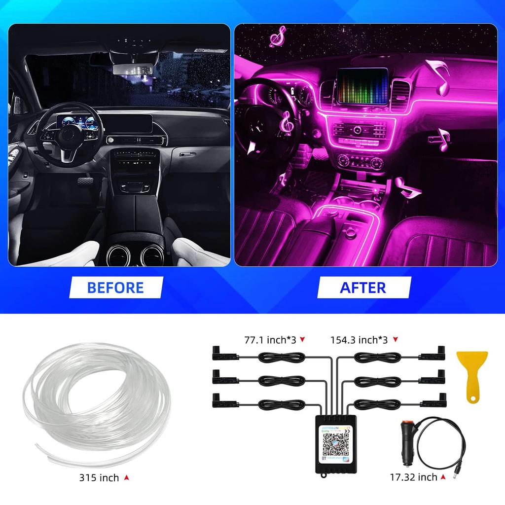Neon Car LED Interior Lights RGB Ambient Light Fiber Optic Kit With APP Wireless Control LED Auto Atmosphere Decorative Lamp
