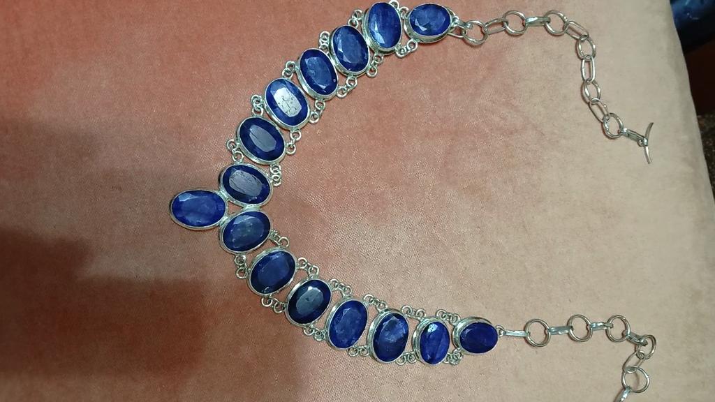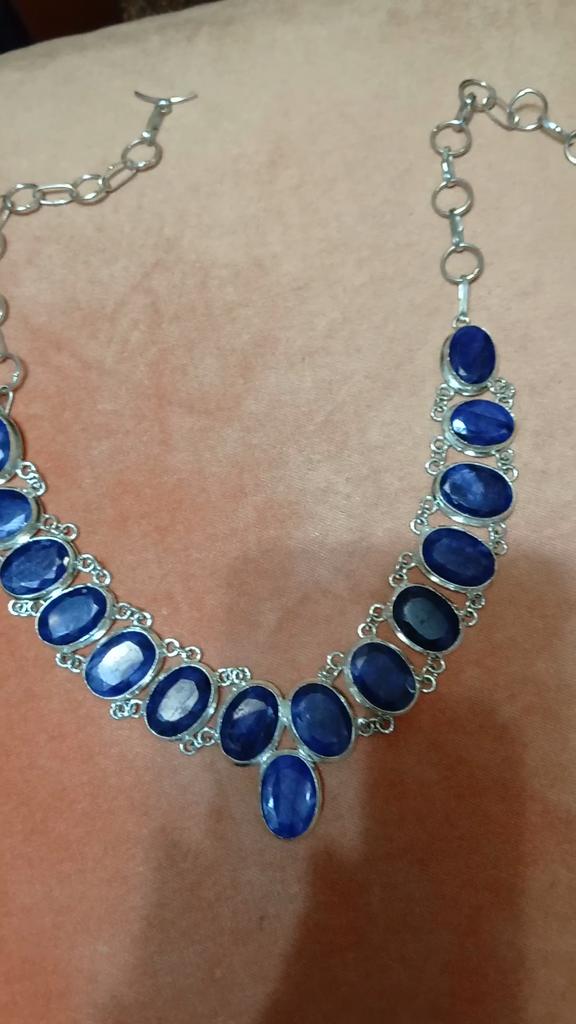Sapphire(Simulated) 925 Sterling Silver Jewelry Necklace 18"