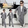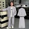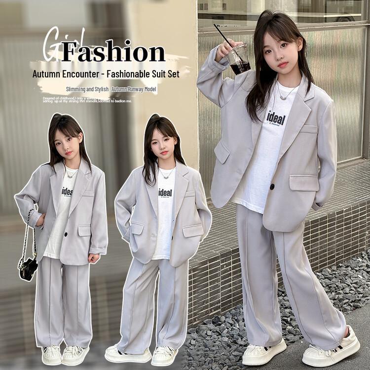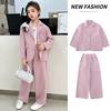 This charming spring suit set features a loose-fit jacket paired with long pants, offering a perfect blend of comfort and style for young girls. Crafted from a soft cotton blend, the ensemble provides a cozy feel while ensuring durability for everyday wear. The jacket's long sleeves add a touch of elegance, making this outfit ideal for various occasions, from casual outings to more formal events.