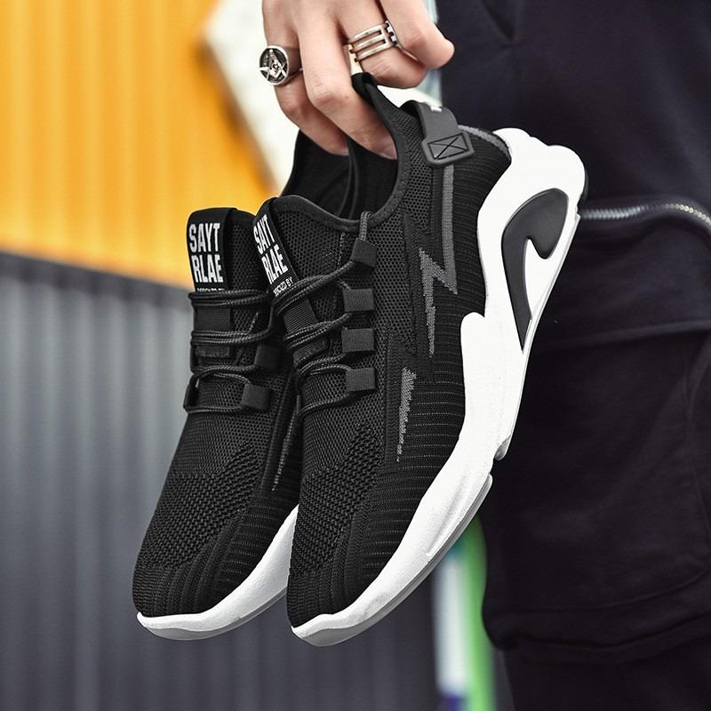 Summer New Men's Shoes Fly-woven Mesh Breathable and Lightweight Casual Shoes Lace-up Soft-soled Running Sneakers