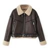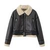 Women's Length Down Padded Leather Jacket Long Quilted Jacket With Removable Fur-Collar