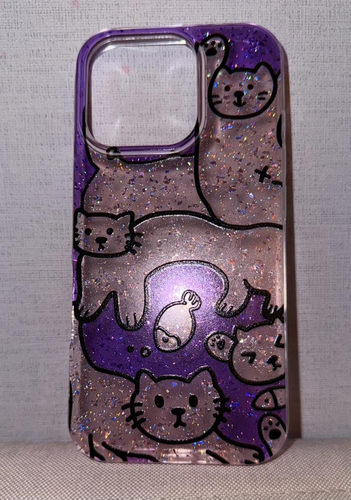 Cute Cat Stand Suitable for Apple 16pro Mobile Phone Case Iphone15 Protective Case 14 Glitter Powder 13 Soft Shell