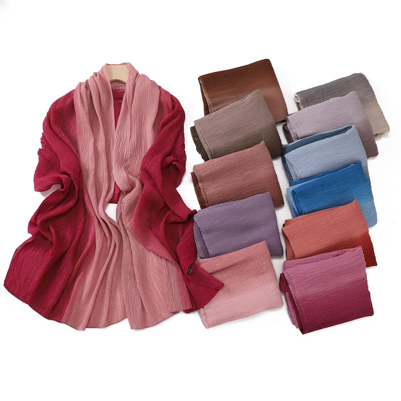 Women Plain Ombre Wrinkle Polyester Shawls Scarf Lady Shimmer Pleated Headband Wrap Solid Crinkle Scarves Muslim Hijab 180*70Cm