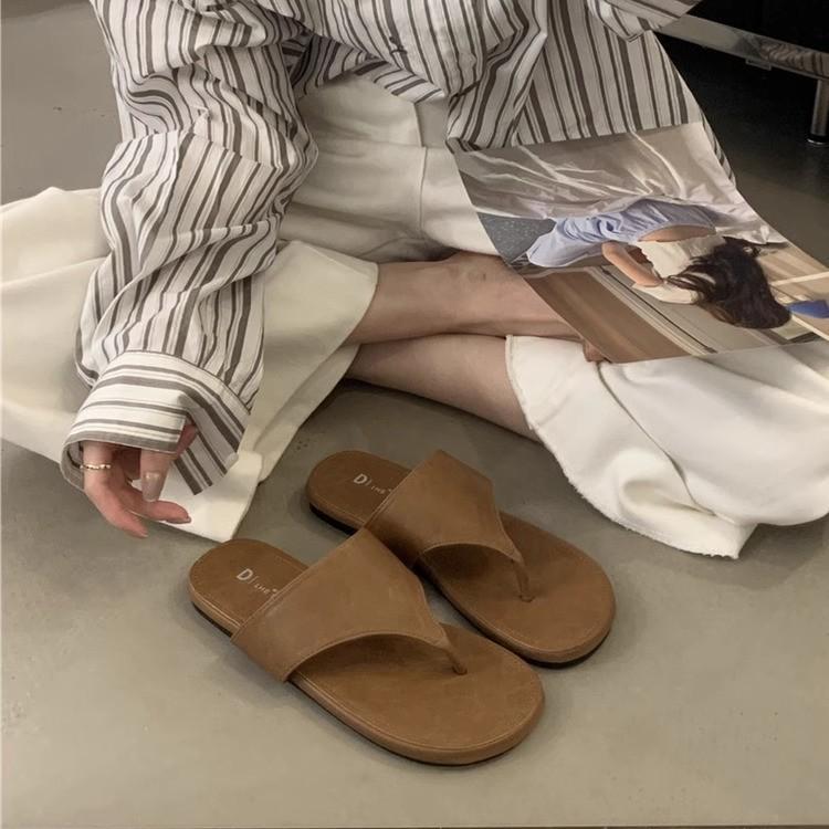 Flat-bottomed Flip-flops for Women's Outer Wear 2025 Spring and Summer New Vacation Travel Beach Shoes Soft-soled Feet Cold Slippers for Women