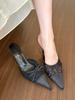 Cold and Gentle Feeling! Lace Pointed Head Bow High Heels Women's 2025 Spring New Sexy Bag Head Half Slippers