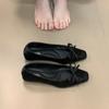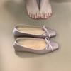 French Satin Square Head Bow Mary Jane Shoes Women's 2025 Autumn New Satin Pleated Flat Bottom Light Mouth Single Shoes