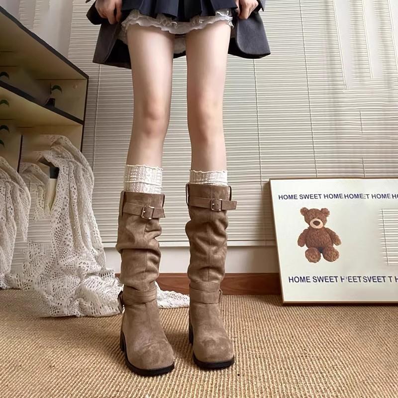 2025 New Autumn Thin with Skirt Boots Women's Platform Boots Brown Stacked High Boots Maillard Boots