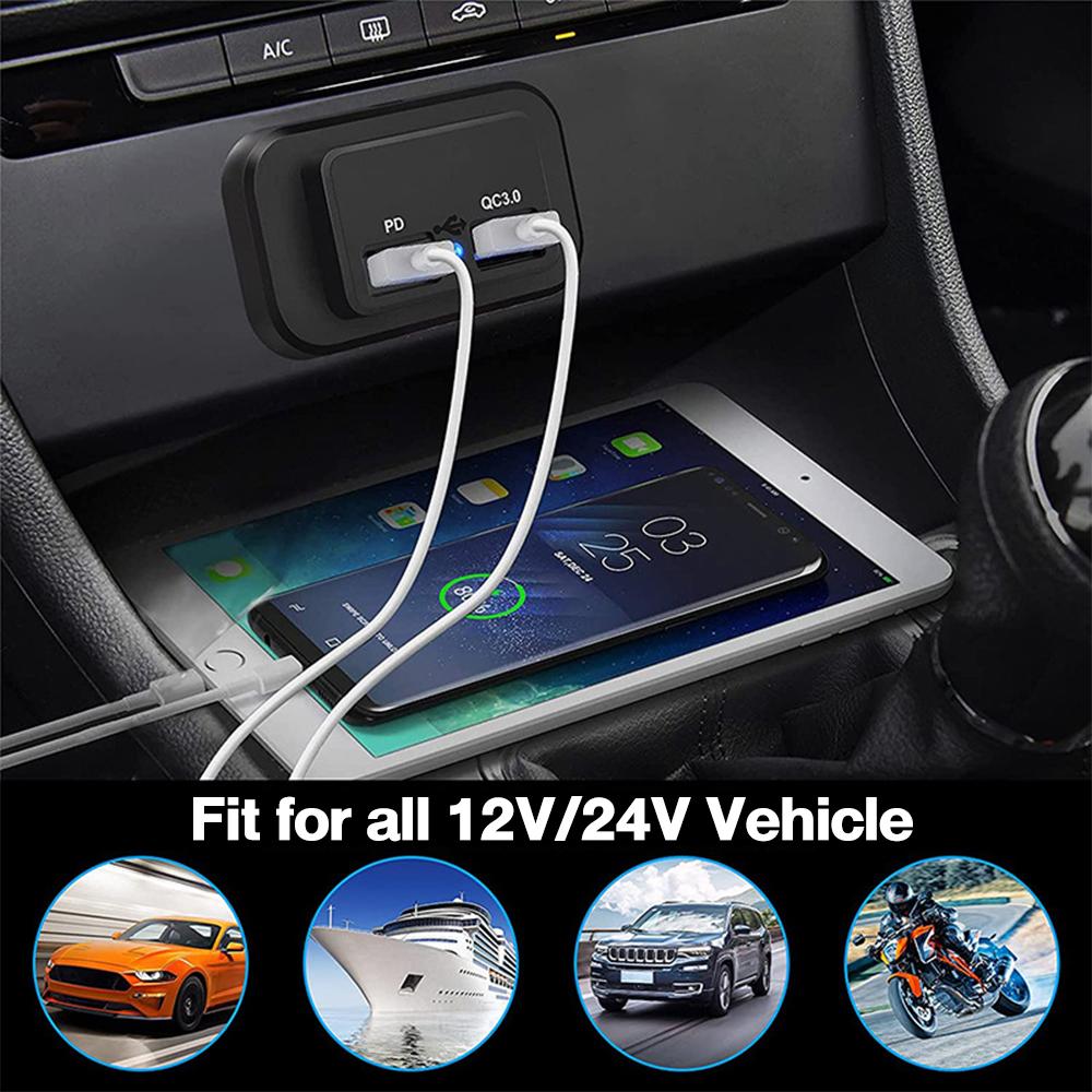 QC3.0 PD Car Charger Socket Quick Charge Dual USB Charger Outlet Panel Power Adapter for Truck Camper Caravan Accessories 12/24V