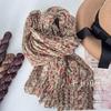 Floral Cotton and Linen Scarf New Korean Version Sunscreen Pleated Thin Retro Floral Printed Shawl Outer