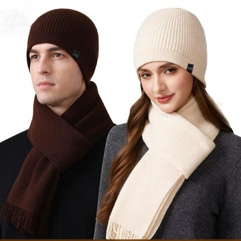 Unisex Warm Hat and Neck Scarf Set for Outdoor Cold Protection Knit Woolen Cap with Ear Cover For Men and Women