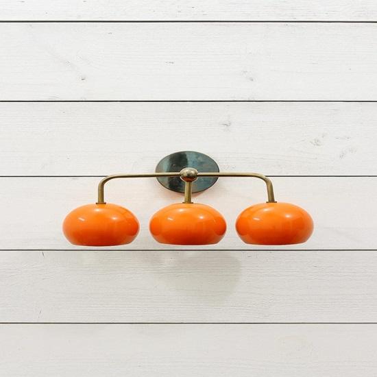 Mid Century Modern Wall Sconce Orange Turquoise Globe with Brass Arm