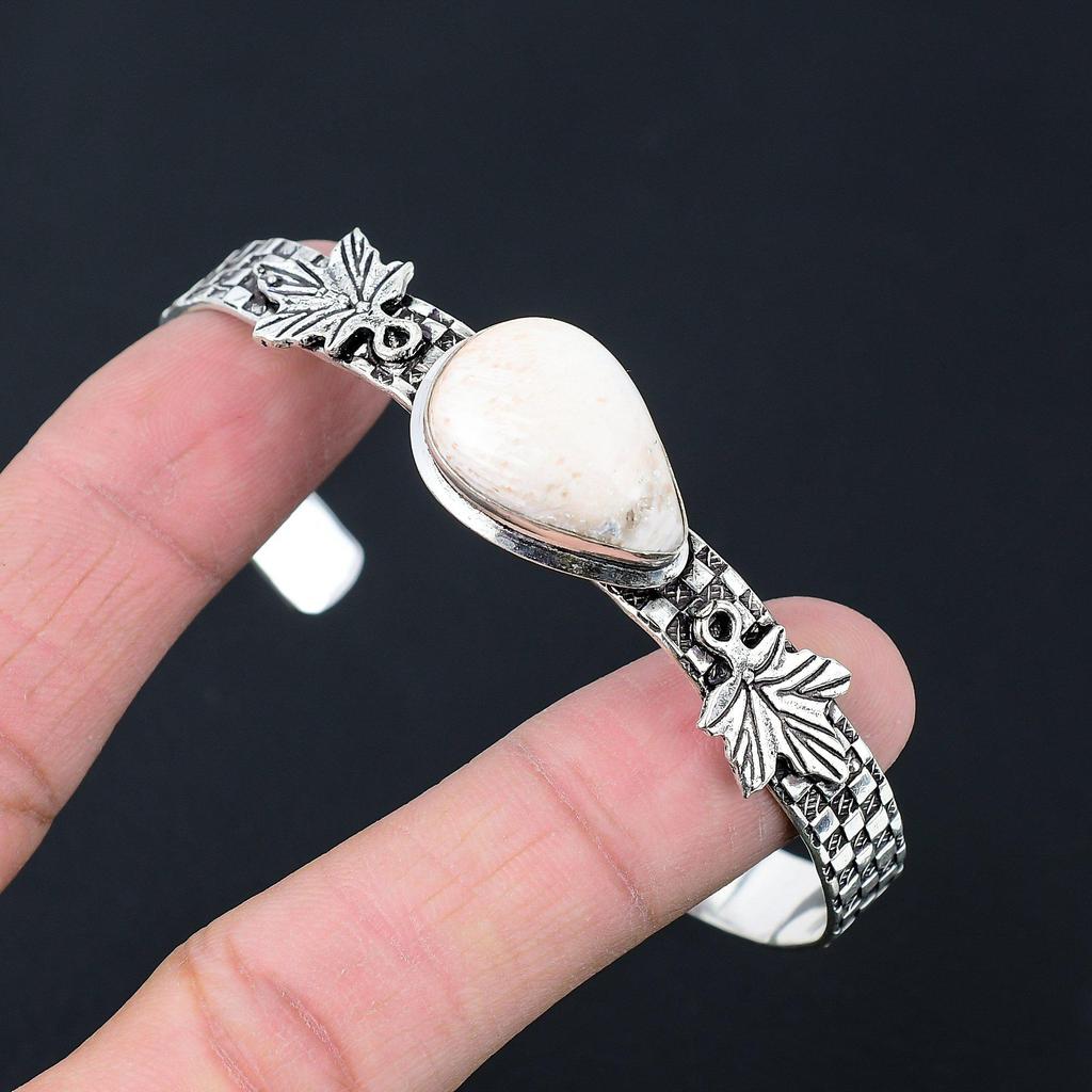 Natural Scolecite Gemstone 925 Sterling Silver Bangle Leaf Adjustable For Girls