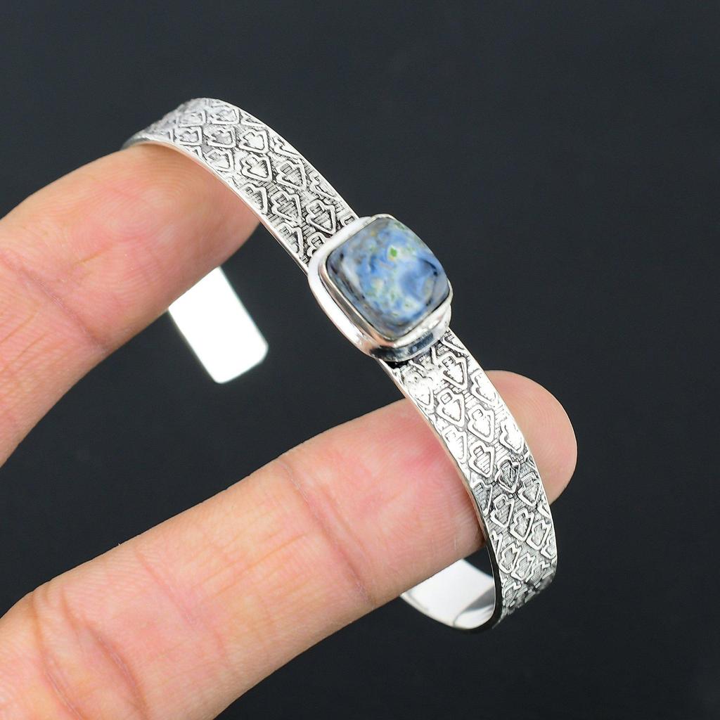 Natural Sodalite Gemstone Bangle Adjustable 925 Sterling Silver For Women