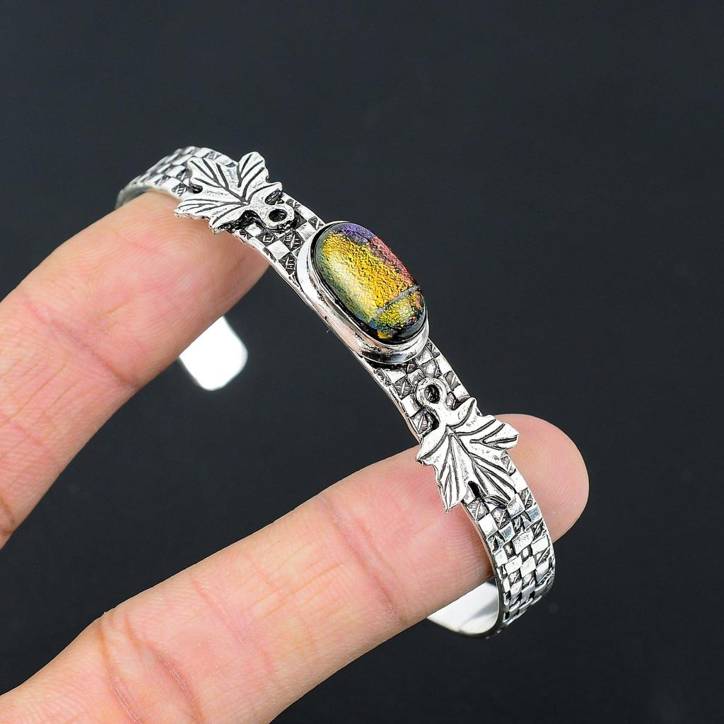 Gift For Women Bangle Adjustable 925 Silver Natural American Dichroic Glass