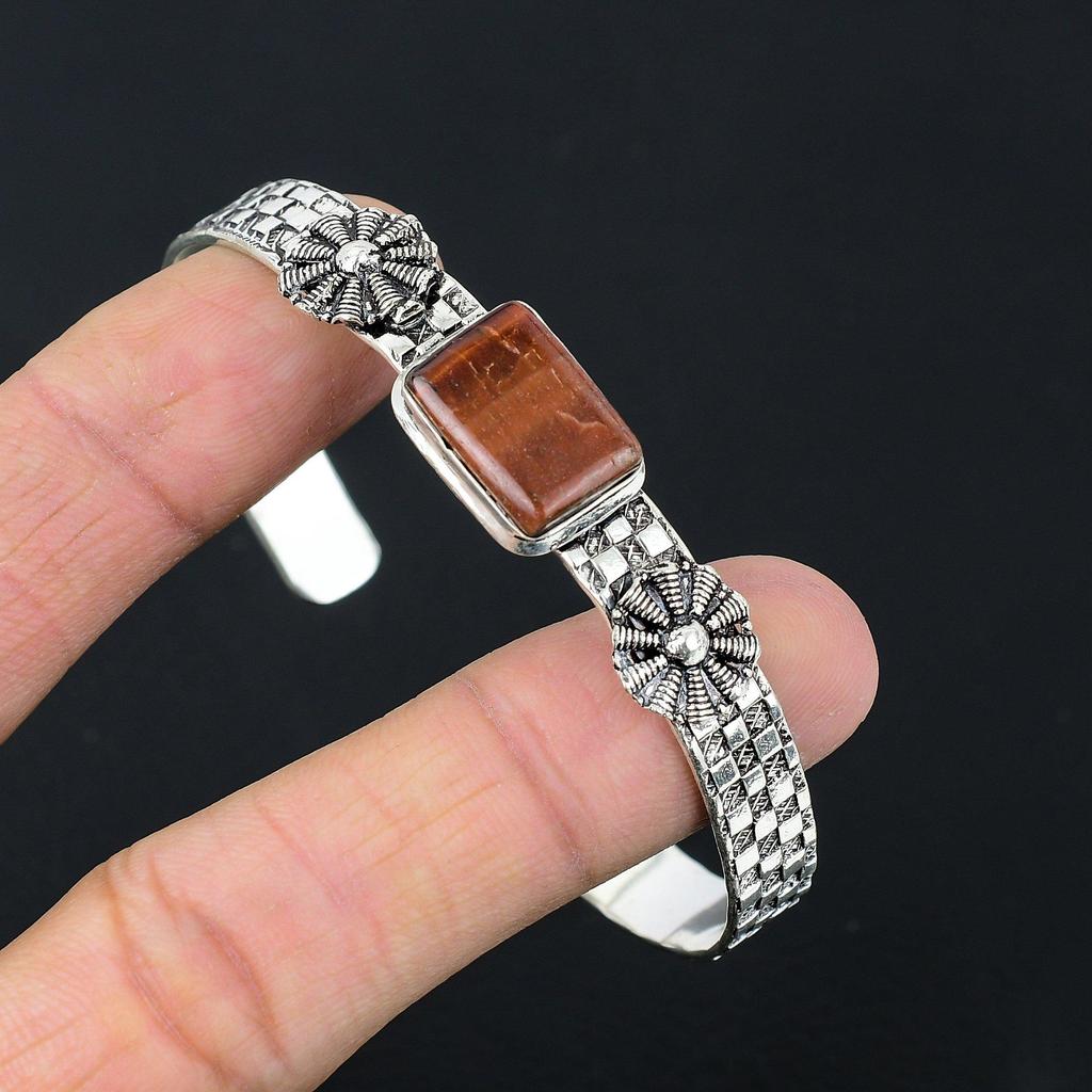 Mothers Day Sale Sterling Silver Radiant Tiger Eye Stone Birthday Bangle Jewelry