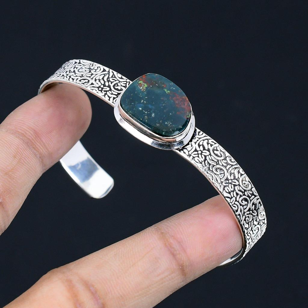 Natural Bloodstone Gemstone Bangle Adjustable 925 Sterling Silver Indian Jewelry