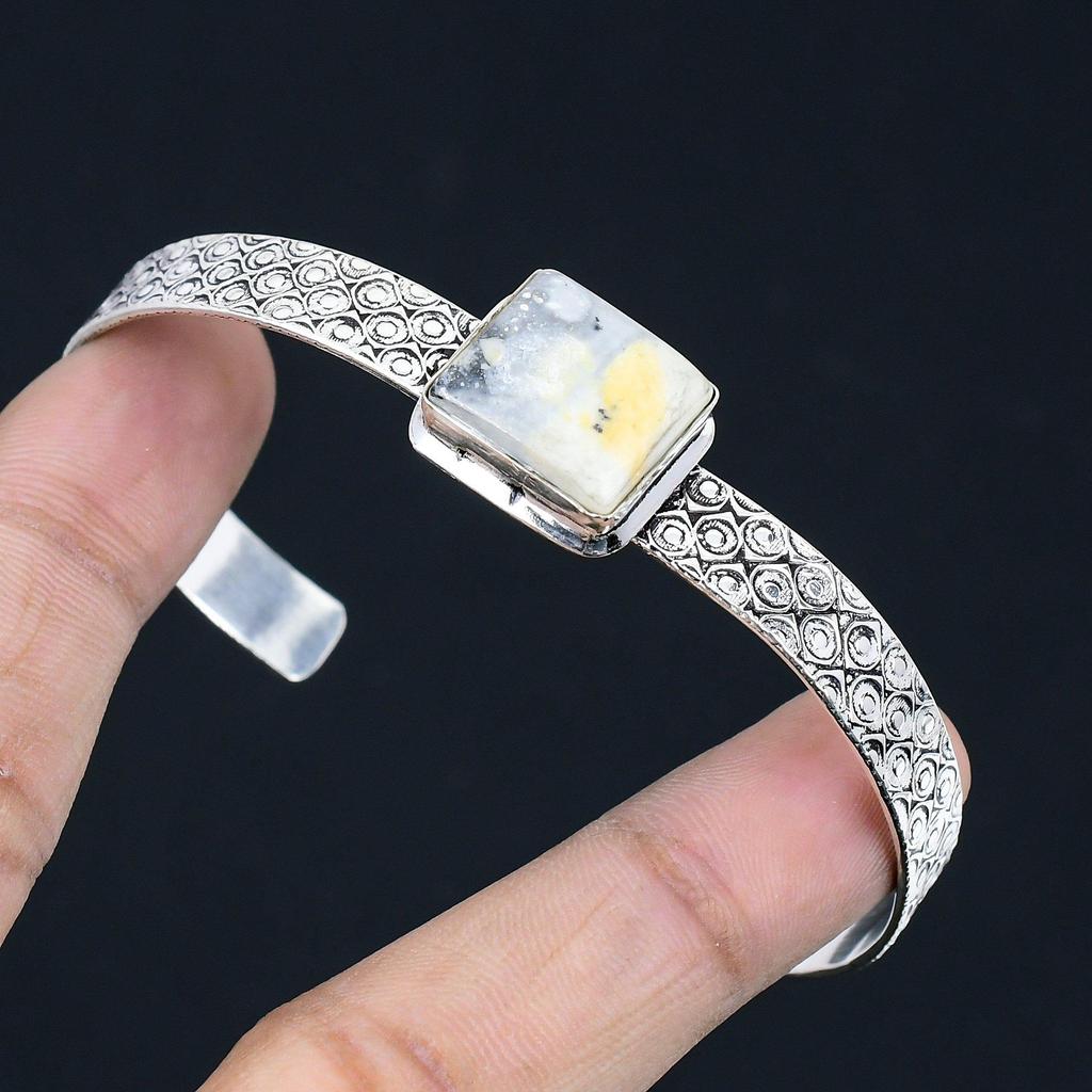 Halloween Sale Natural Maligano Jasper Art Deco Bangle Jewelry Sterling Silver
