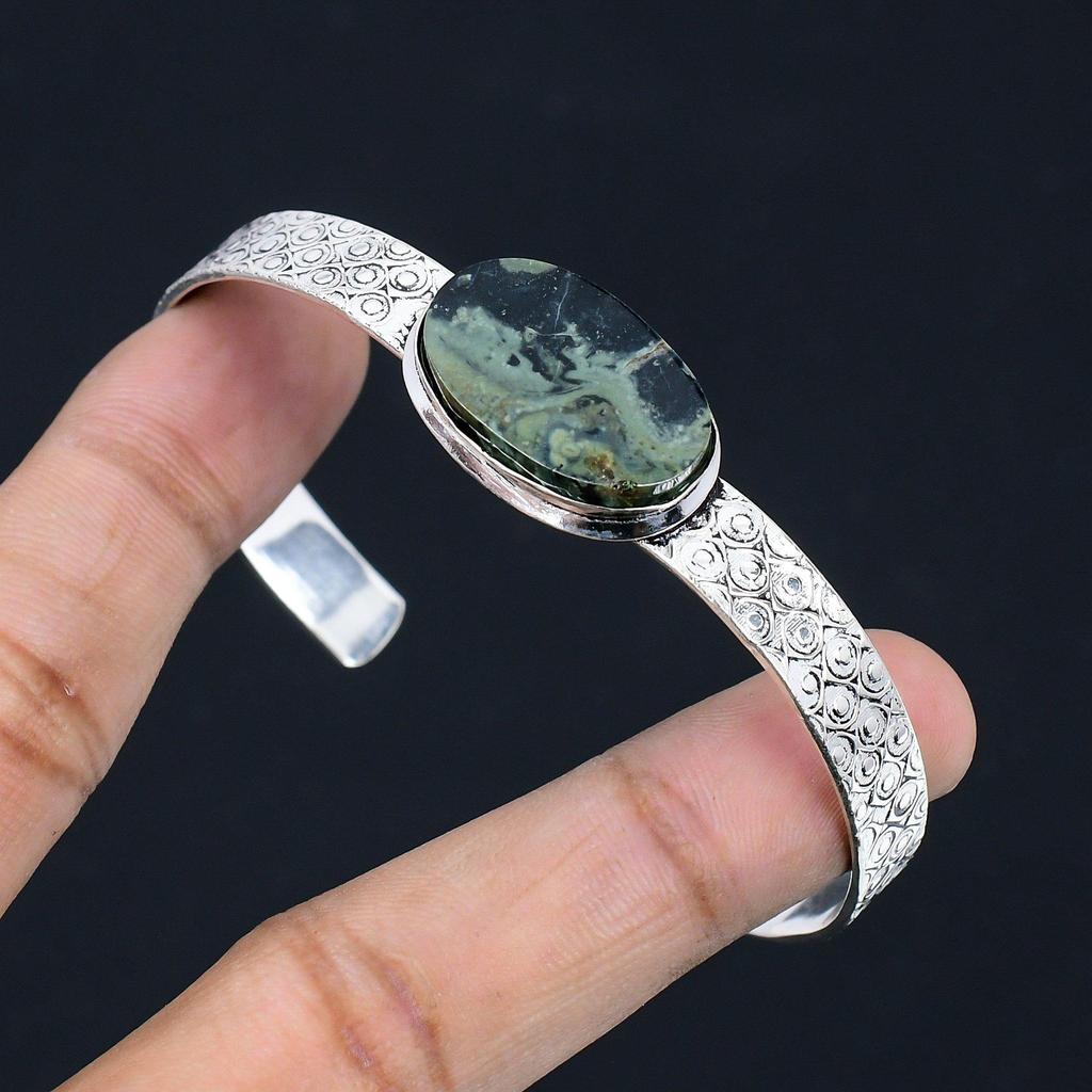 Womens Day Sale Kambaba Jasper Stone 925 Silver Daughter Unique Bangle Bracelet