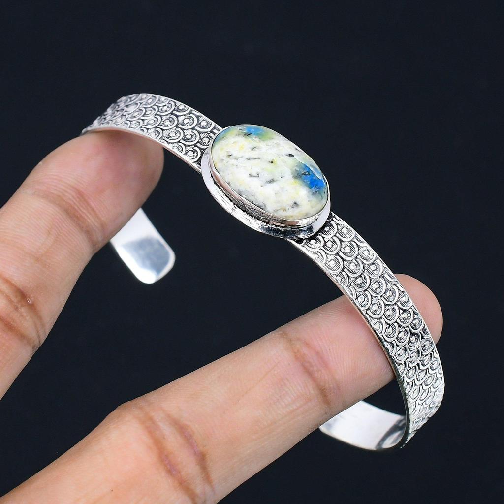 Natural K2 Jasper Gemstone 925 Sterling Silver Bangle Adjustable For Girls
