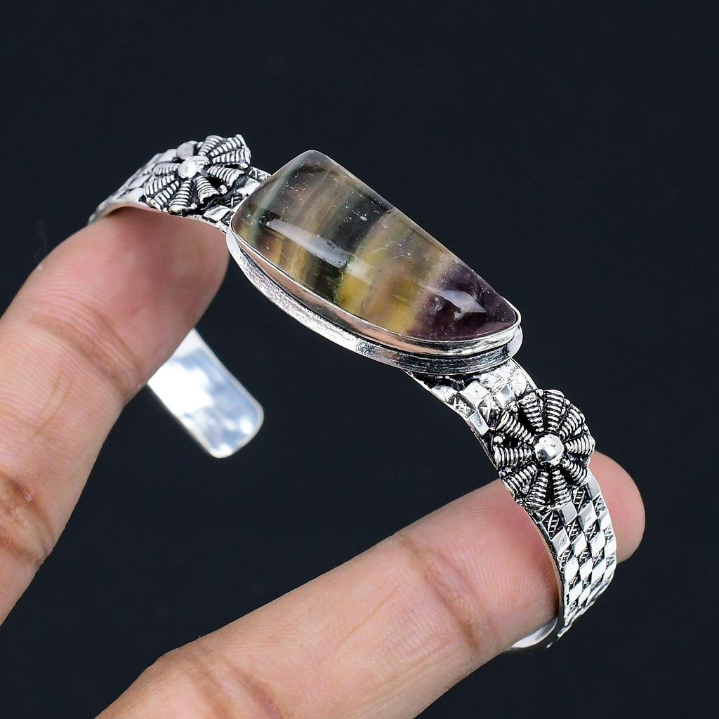 Trillion Multi Fluorite Gemstone Sister Elegant New Bangle 925 Sterling Silver