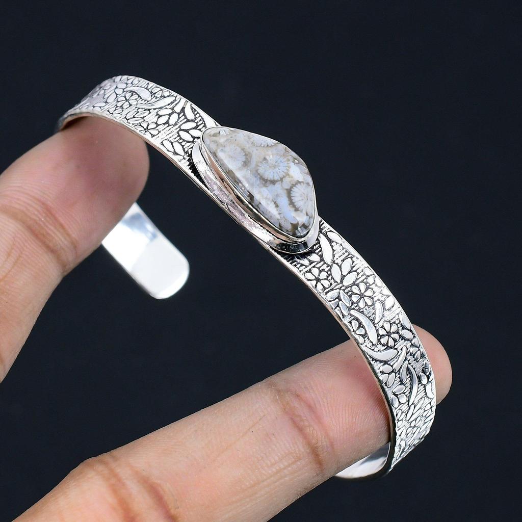 Sisters Day Deal Sterling Silver Fossil Coral Gemstone Engagement Bangle Jewelry