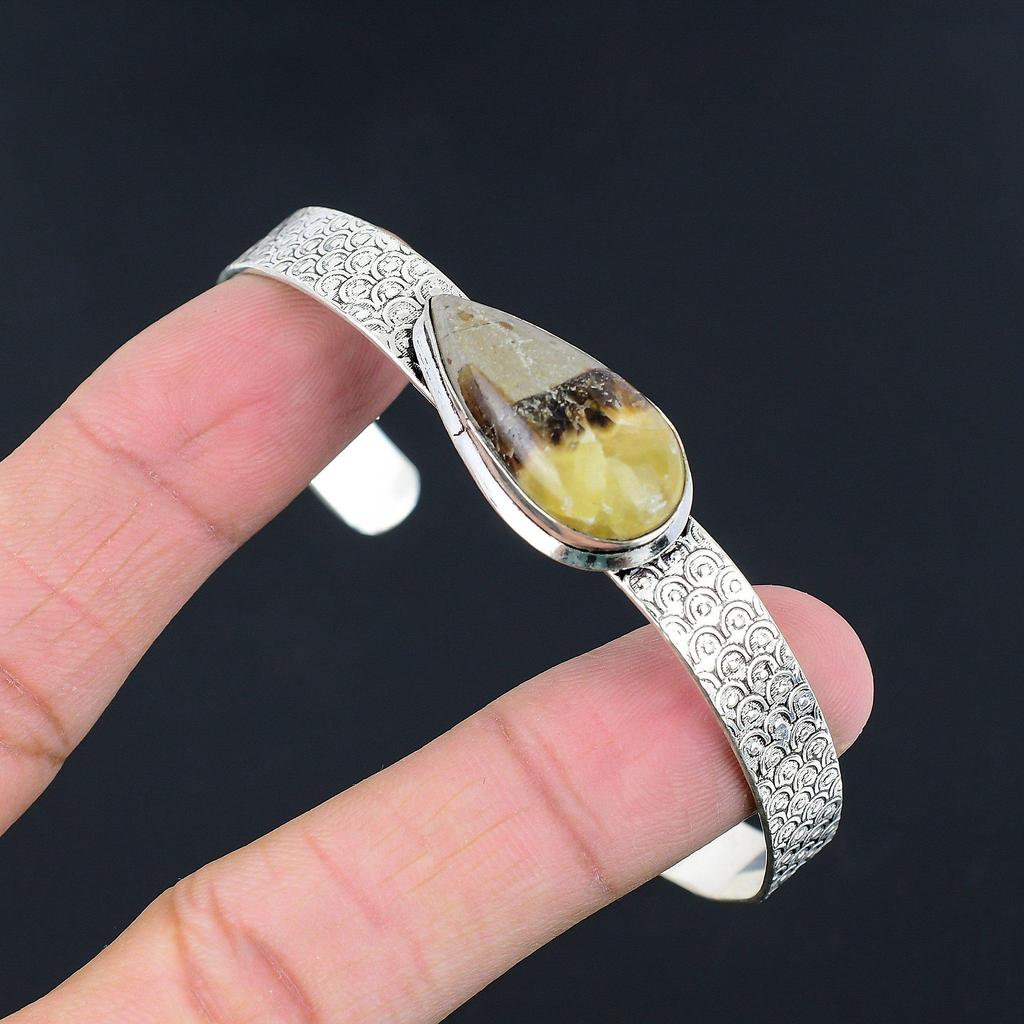 Sisters Day Deal 925 Sterling Silver Septarian Gemstone Art Deco Birthday Bangle