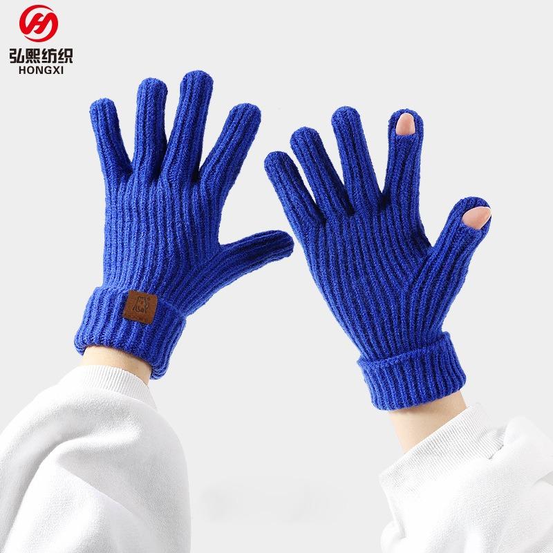 Knitted Gloves Candy Color Extended Finger Gloves Outdoor Warm Cold Cycling Winter Gloves