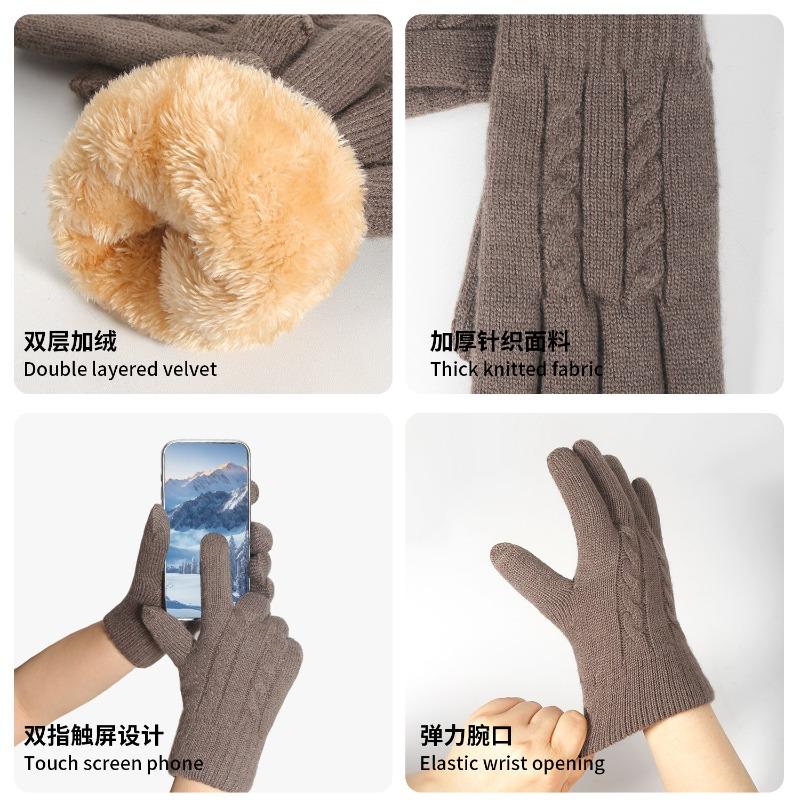 Double-layer Gloves Men's Fleece Warm Thickened Autumn and Winter Cold-proof Outdoor Knitted Gloves
