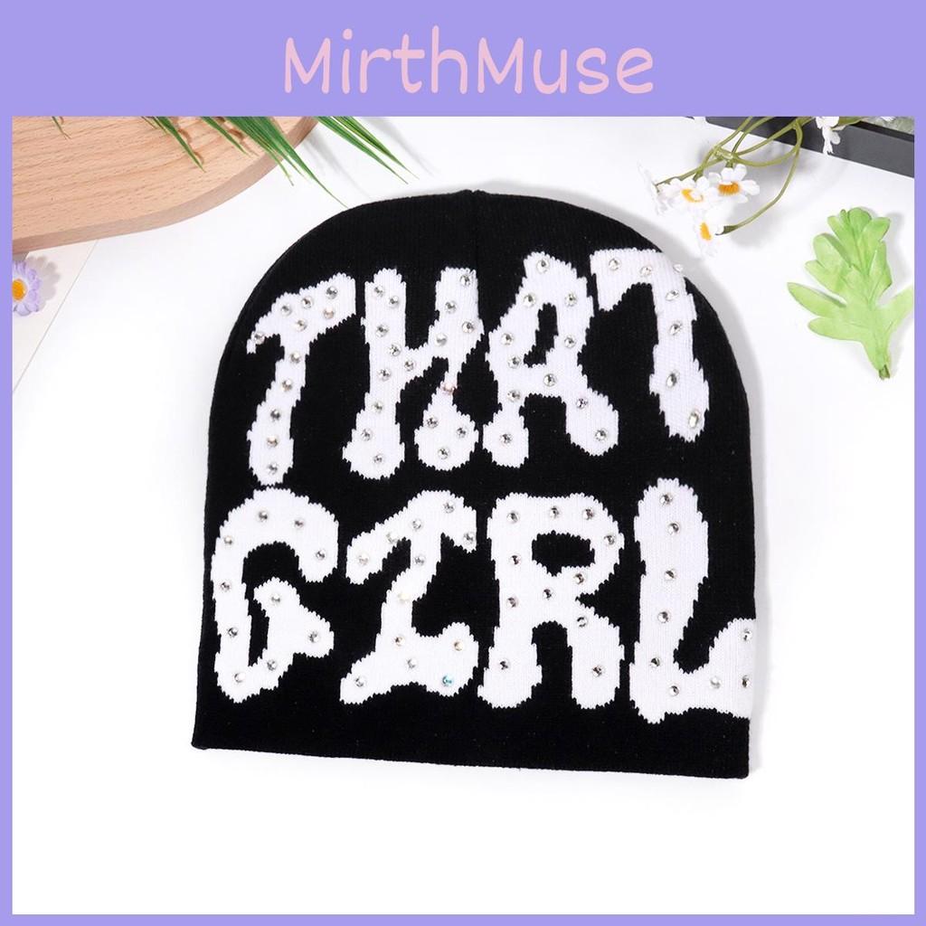 Pattern Letter Fashion Rhinestone Decoration Women Casual Warm Knitted Hat