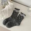 Female Spring and Autumn Sweet Lace Lace Pin Bead Bow Ballet Style Boneless Drum Pile Socks