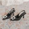 French Rear Strap Black Pointed High Heels Rhinestone Square Buckle Summer New Thin Heel Niche with Skirt Sandals Women