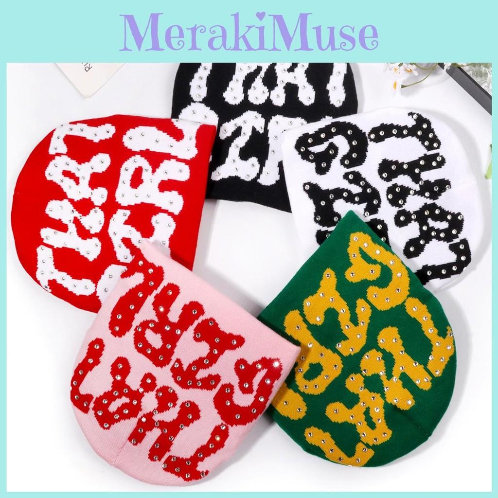 Pattern Letter Fashion Rhinestone Decoration Women Casual Warm Knitted Hat
