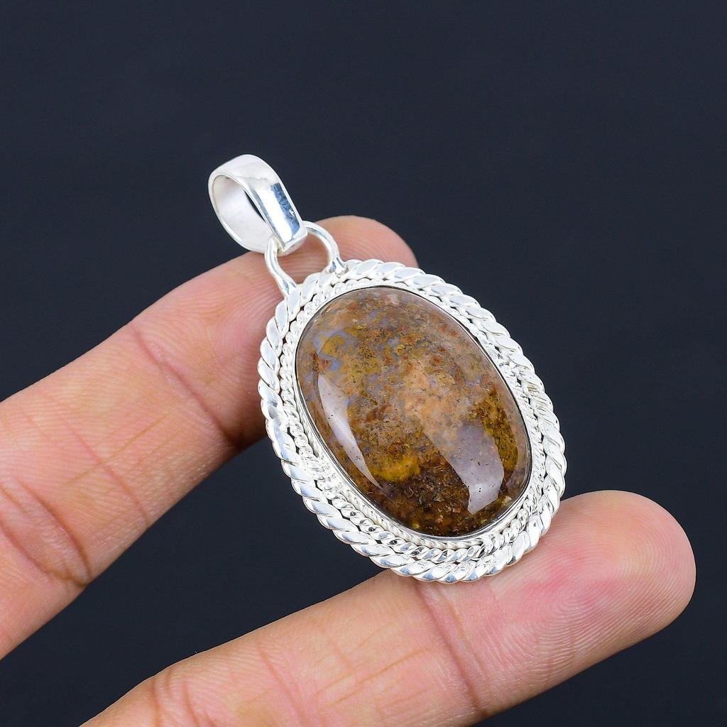 Birthday Gift For Her Natural Seam Agate Gemstone Pendant 925 Sterling Silver