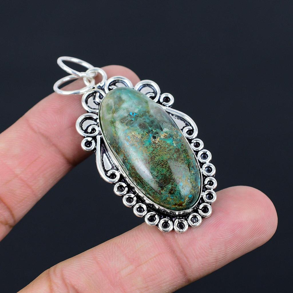 Chrysocolla Stone 925 Sterling Silver Daughter Engagement Bezel Pendant Jewelry