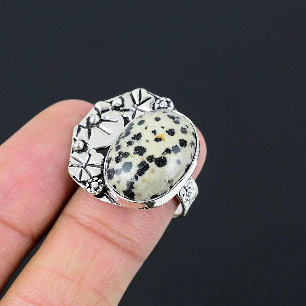 925 Silver Oval Dalmatian Jasper Stone Statement New Stackable Ring Jewelry US 8