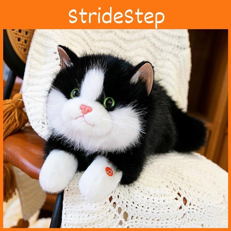 This plush cat toy features a realistic animal design with sound effects, providing engaging sensory play for children. Crafted from ultra-soft short pile plush and filled with PP cotton,Its durable construction supports frequent cuddling and handling. Ideal for use as a comforting companion or decorative piece in a child's bedroom, it is easy to cleansimply wipe with a damp cloth to maintain softness and hygiene.