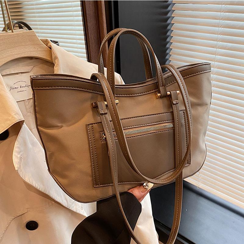 - **Structured Multi-Way Bag Details**: Features a stylish handbag silhouette with PU and nylon material, a textured finish, dual top handles, a decorative patterned shoulder strap, and a front zip pocket. It exudes minimalist and practical charm. Four classic color options cater to diverse style preferences.