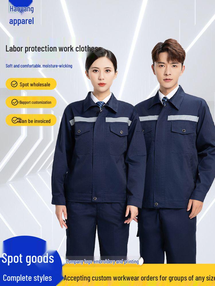 Men's Long Sleeve Workwear Set with Reflective Strips for Electricians and Auto Repair