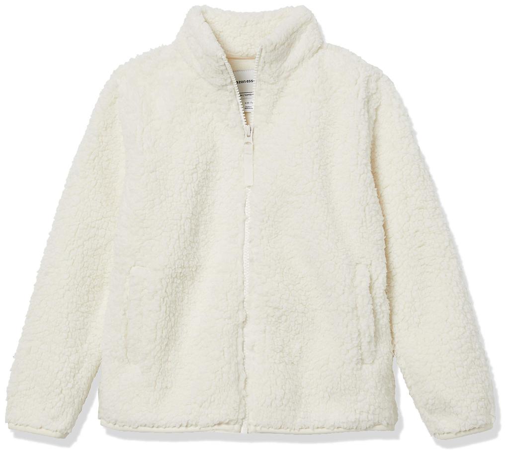 Amazon Essentials Fleece Sherpa Sizes Girls' Zip-Up Jacket, Ivory, 150-165