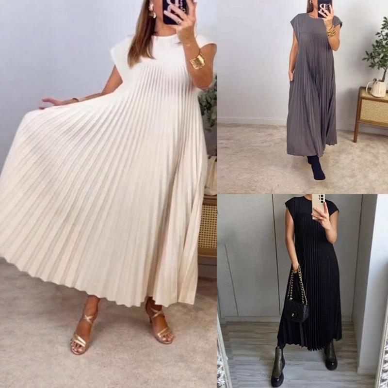 Discover elegance and style with this women's sleeveless pleated long dress, designed for the 2025 spring season. Crafted from high-quality polyester, this dress offers both comfort and sophistication. Its flowing pleats and timeless design make it a perfect choice for any formal or casual occasion, allowing you to express your European and American fashion sense effortlessly.
