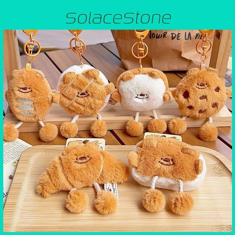 plush keychain, mini bear plush, cartoon keyring, kids bag accessory, soft plush toy, extensible foot keychain, cute bread plush, collectible keyring