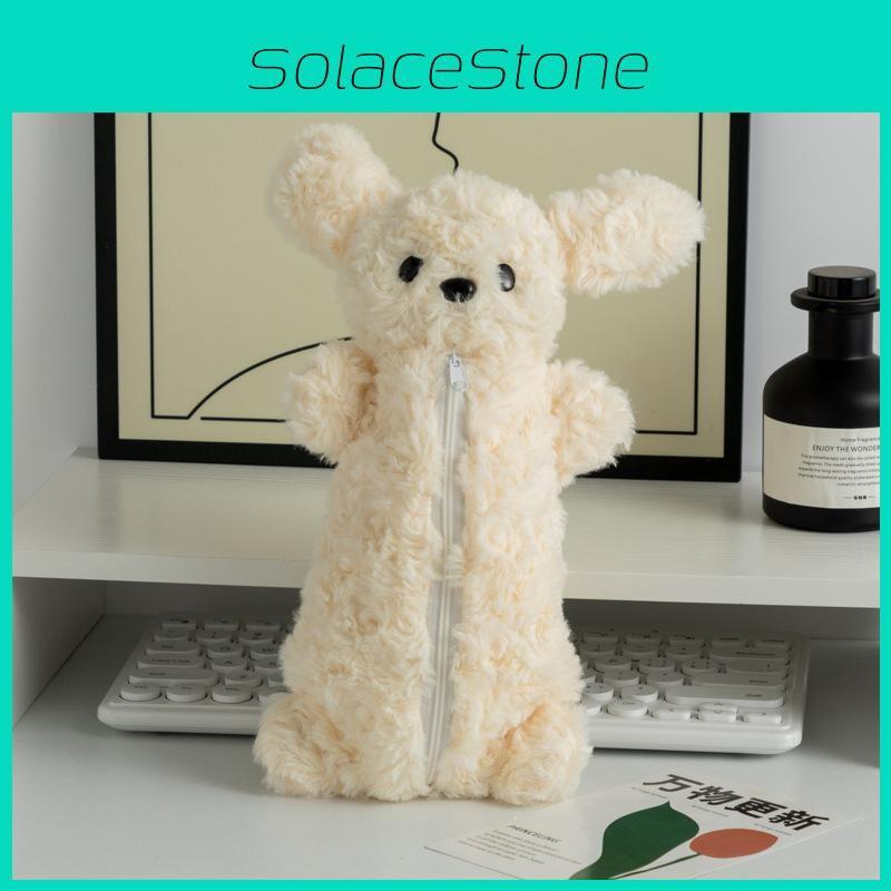 This large-capacity plush Teddy bear stationery organizer features a soft, durable fleece material, designed to hold pens, pencils, and other stationery essentials. The cute cartoon dog design adds a playful touch, suitable for students and office use.
