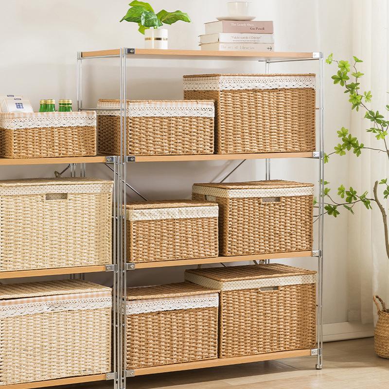 Rattan Woven Storage Basket with Lid - Cosmetics Organizer & Snack Box