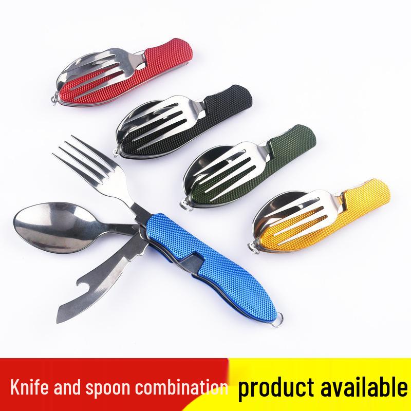 Multifunctional Folding Pocket Knife Set: 3-in-1 Detachable Knife, Fork, & Spoon