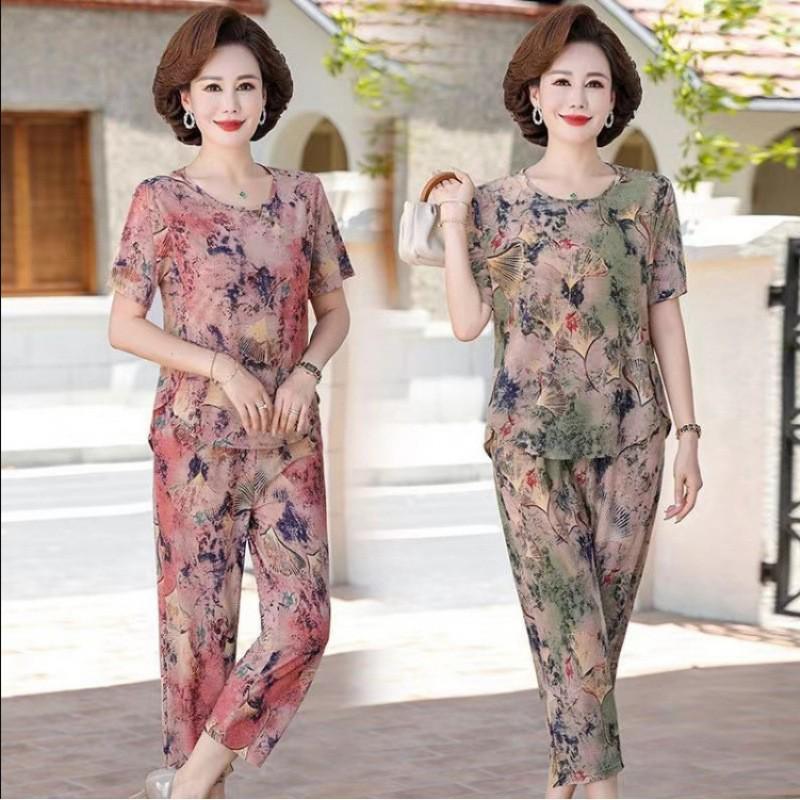 Ice Silk Summer Set for Middle-Aged & Elderly Women - Short-Sleeve Casual Homewear Pajamas