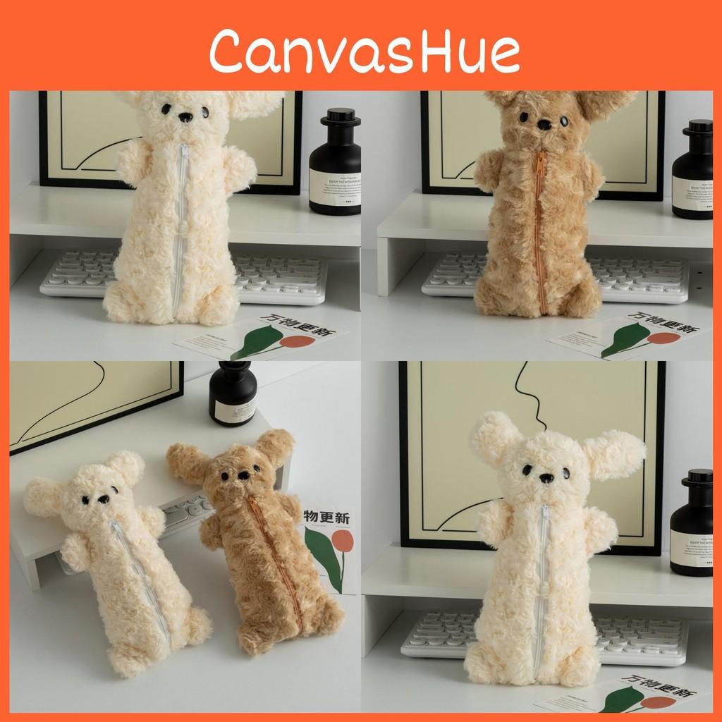 This large-capacity plush Teddy bear stationery organizer features a soft, durable fleece material, designed to hold pens, pencils, and other stationery essentials. The cute cartoon dog design adds a playful touch, suitable for students and office use.