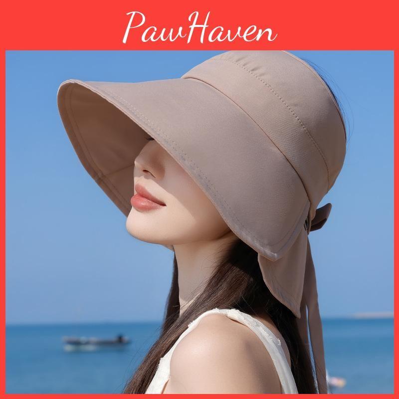 This summer sun hat features a large brim and a flowy, sleeveless design, providing effective sun protection and breathability. Made of polyester with a satin finish. Ideal for beach outings, casual walks, or outdoor activities. Wipe clean with a damp cloth to maintain its appearance.