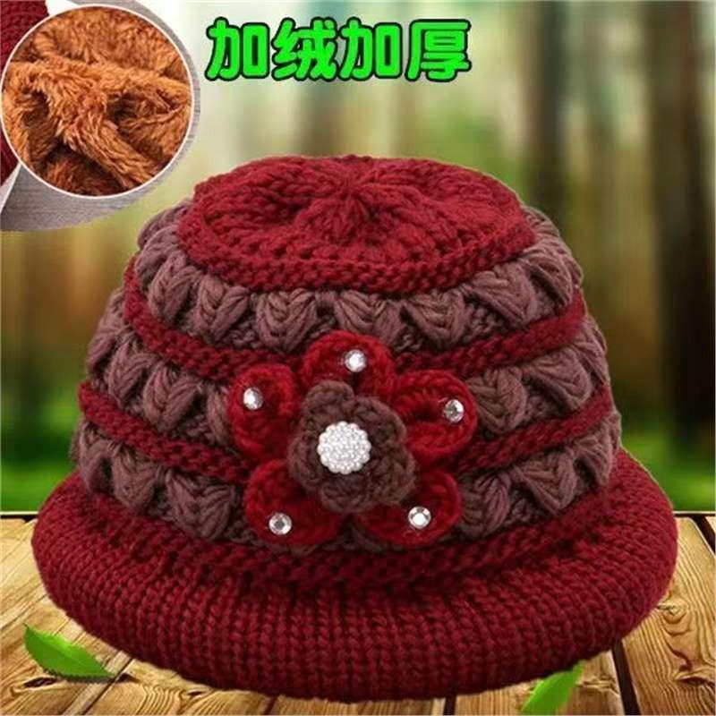 Autumn and Winter Old Lady Hat Hat Grandma Knitted Hat Warm Bucket Hat Medium Old Plush Thick Wool Basin Hat