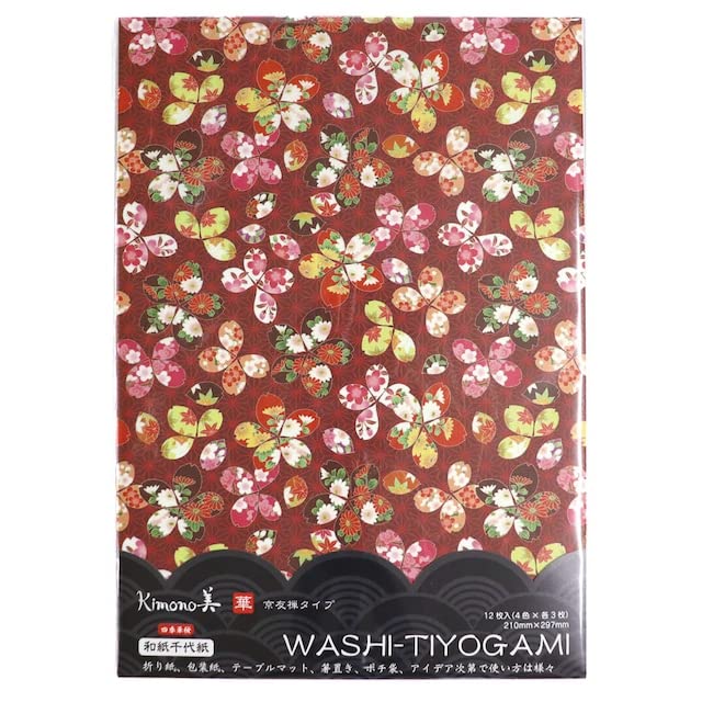 Kamiiso Kimono Beauty Washi Chiyogami Flower A4 Size 12 Sheets Four Seasons Cherry Blossoms 2204 No.